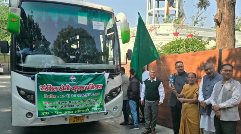 देहरादून- जनपद देहरादून के 28 प्रगतिशील सब्जी उत्पादक कृषकों के समूह को प्रदेश के कृषि एवं उद्यान मंत्री गणेश जोशी ने आज गोविन्द बल्लभ पंत कृषि एवं प्रौद्योगिकी विश्वविद्यालय, पंतनगर में पांच दिवसीय संरक्षित खेती पर प्रशिक्षण हेतु बस को हरी झंडी दिखाकर रवाना किया।